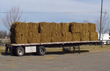 Push bales from flatbed truck using tractor or payloader with bucket. Start at rear of truck and work forward. Push bales away and toward the rear of the truck. This will prevent bales from bouncing back toward the cab area of the truck when they hit the ground.