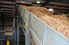 Racetrack bedding generally contains more strings and trash than horse farm material. Creech instructs its horse farms to place trash cans in each barn and to make sure employees use them and keep the bedding nearly free from trash and other debris. Furthermore, by running the material through our baling process, we can have an additional chance to remove strings and trash that would otherwise have been delivered to your facility. As the material is loaded into our fluffing feeder box, the rotating fluffing bars in the box collect 99% of any missed strings that are in the original muck, saving you significant time and effort as your employees will not have to cut strings out of your equipment. From the feeder box, the material then falls onto a slow moving conveyor, which allows us another opportunity to again grab foreign material before it goes into the bale chamber.
